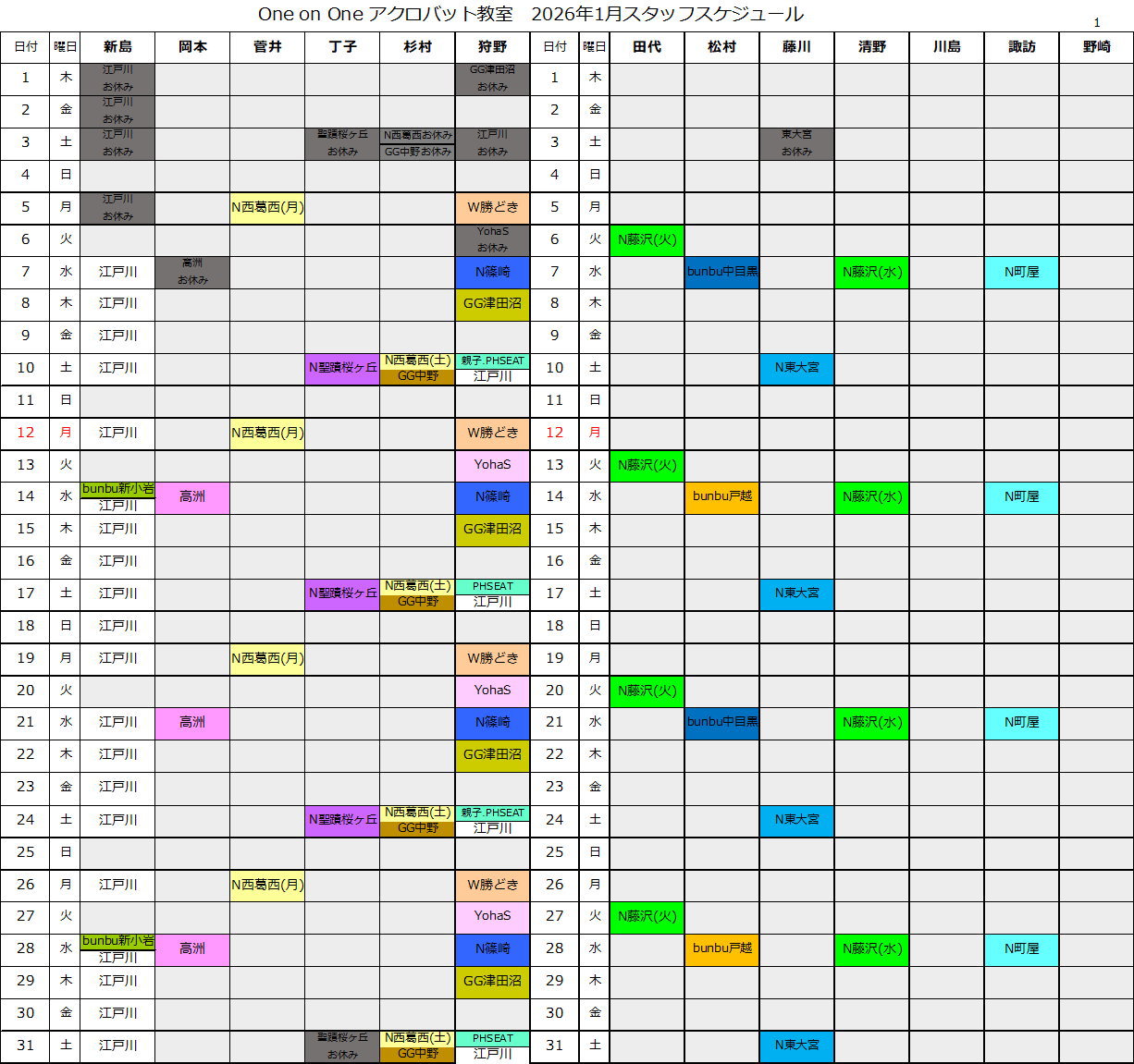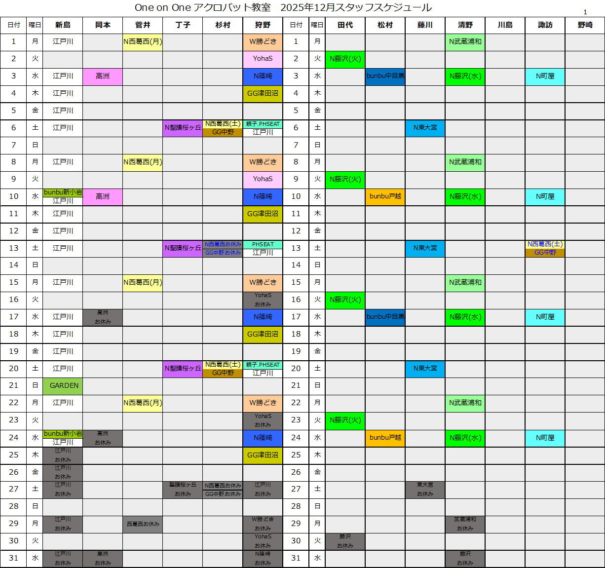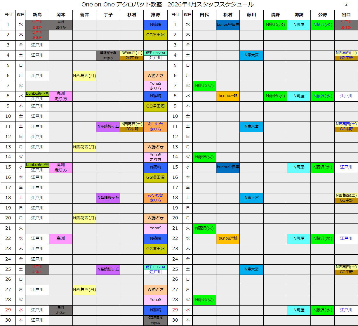 スタッフスケジュール