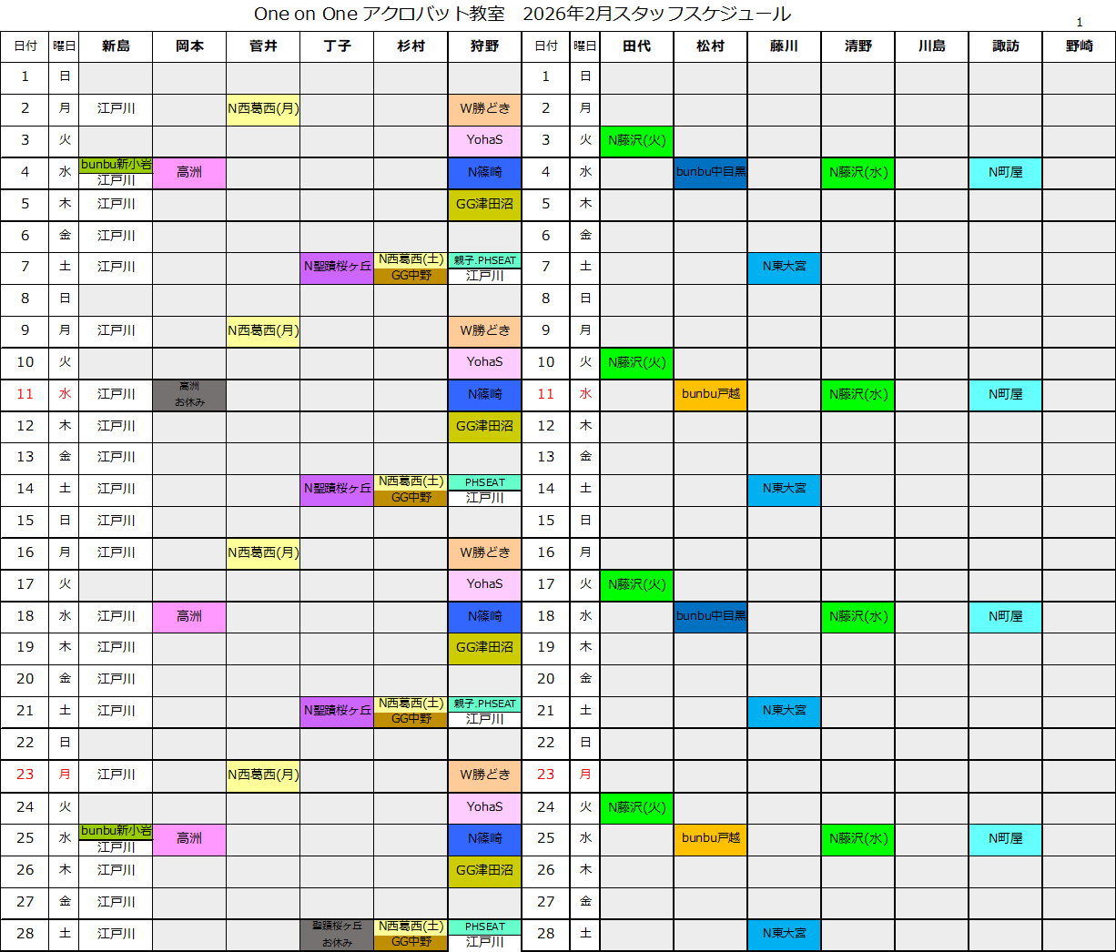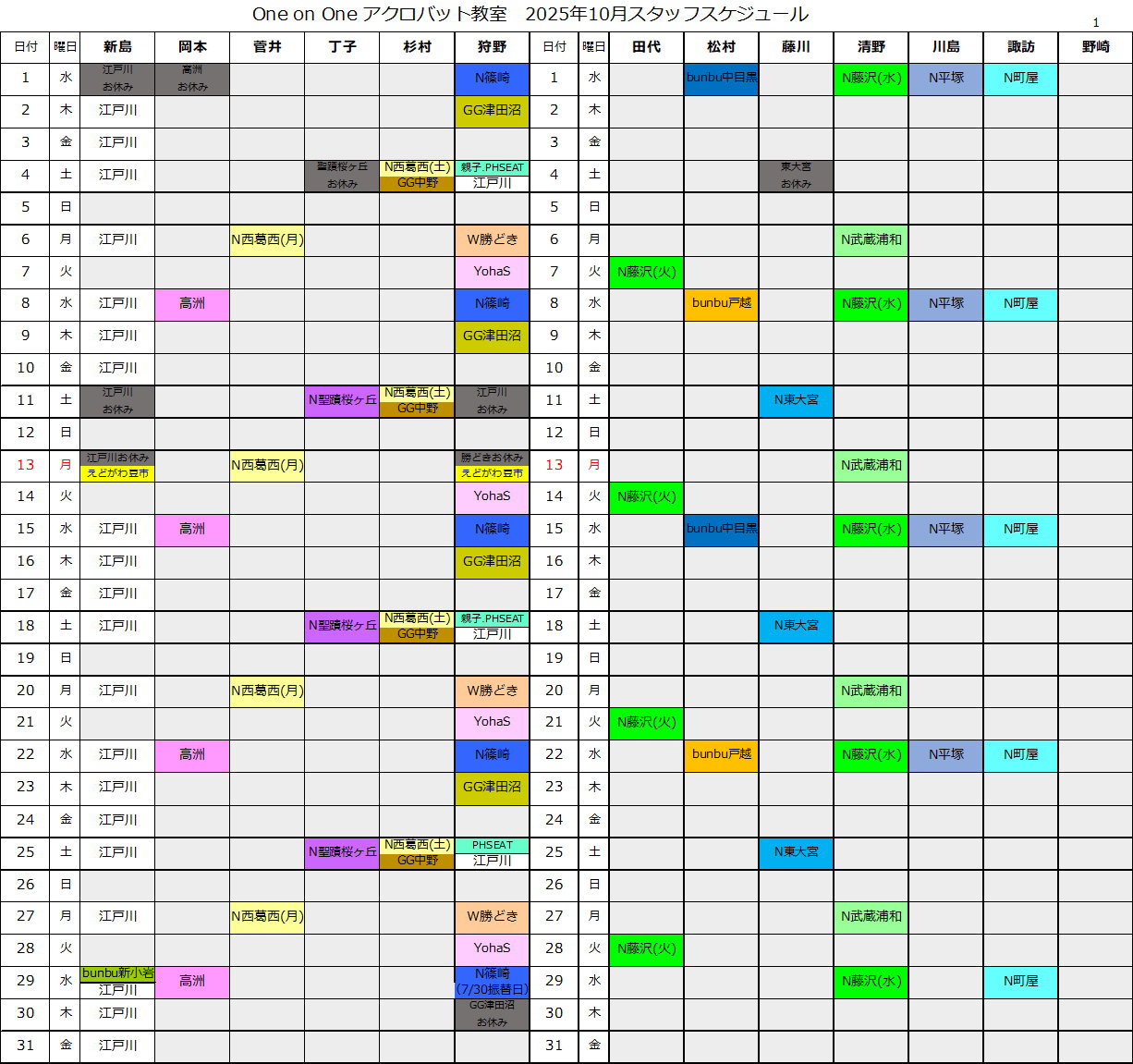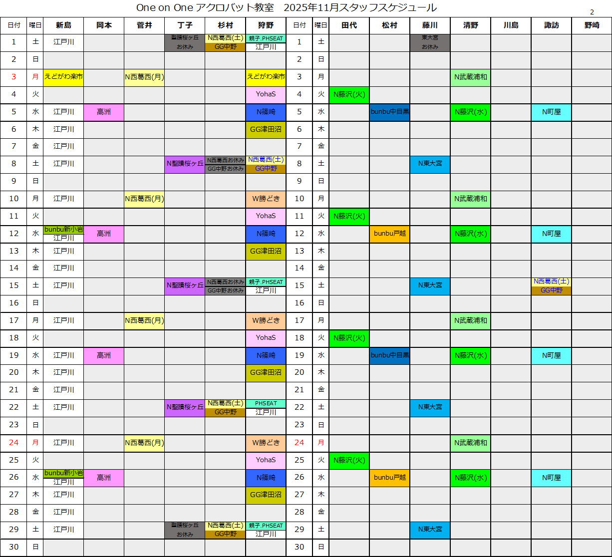 スタッフスケジュール